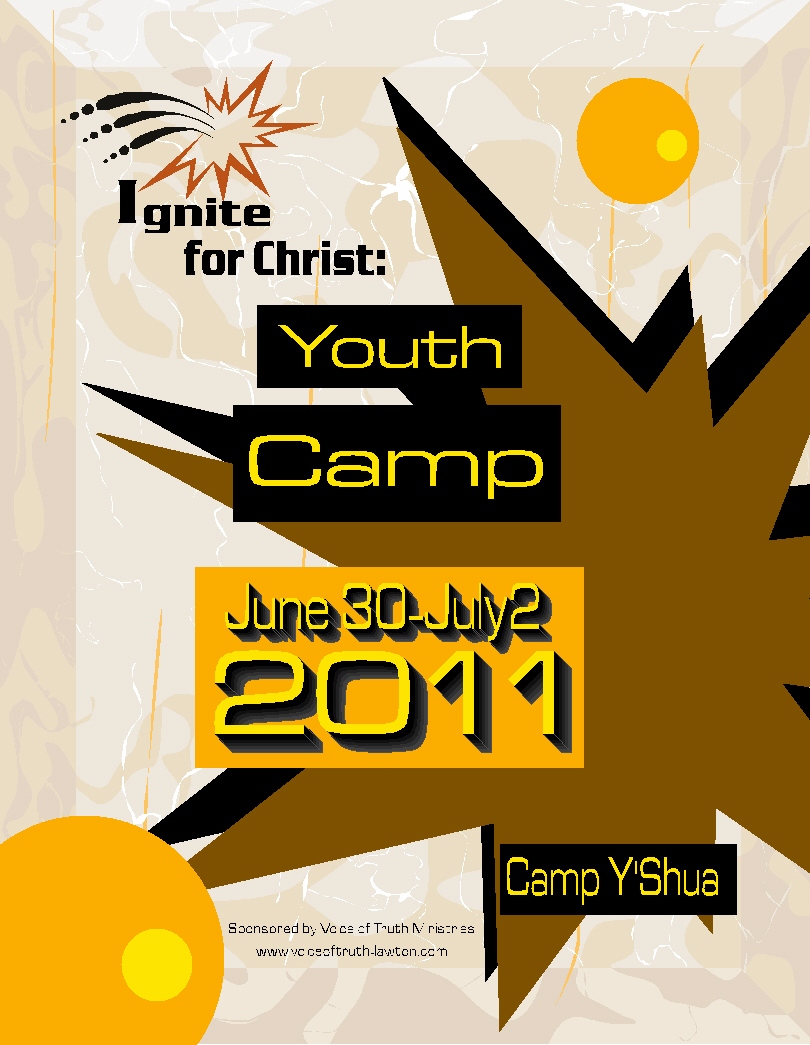We are excited to offer Ignite for Christ: Youth Camp 2011 at Camp Y'shua. The camp will be held on June 30-July 2. Ages for campers are 8-16 years old and will be $35/camper. If your church would like to send kids and support staff, please print out the appropriate forms below or contact Shana at 580-483-2570 or e-mail shanaramirez@yahoo.com to recieve a packet by mail. Registration is limited and is filled on a first come, first serve basis! Early registration is a $10 deposit per camper , this will hold your spot for the camp. Be sure and register early. We will begin accepting registration on Friday, April 15th. Deadline for Registration is June 15, 2011. Click Link Below for additonal details